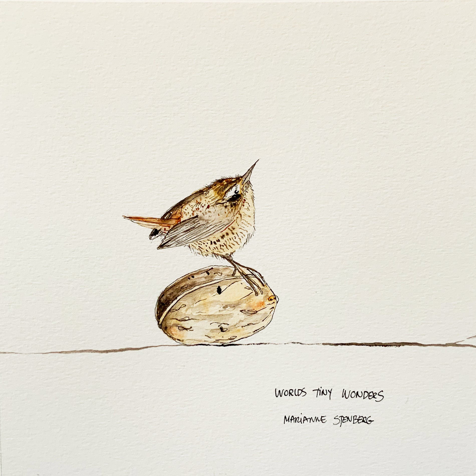 Tegning 20x20 uden ramme. Tegnet med tusch og akvarel på papir.